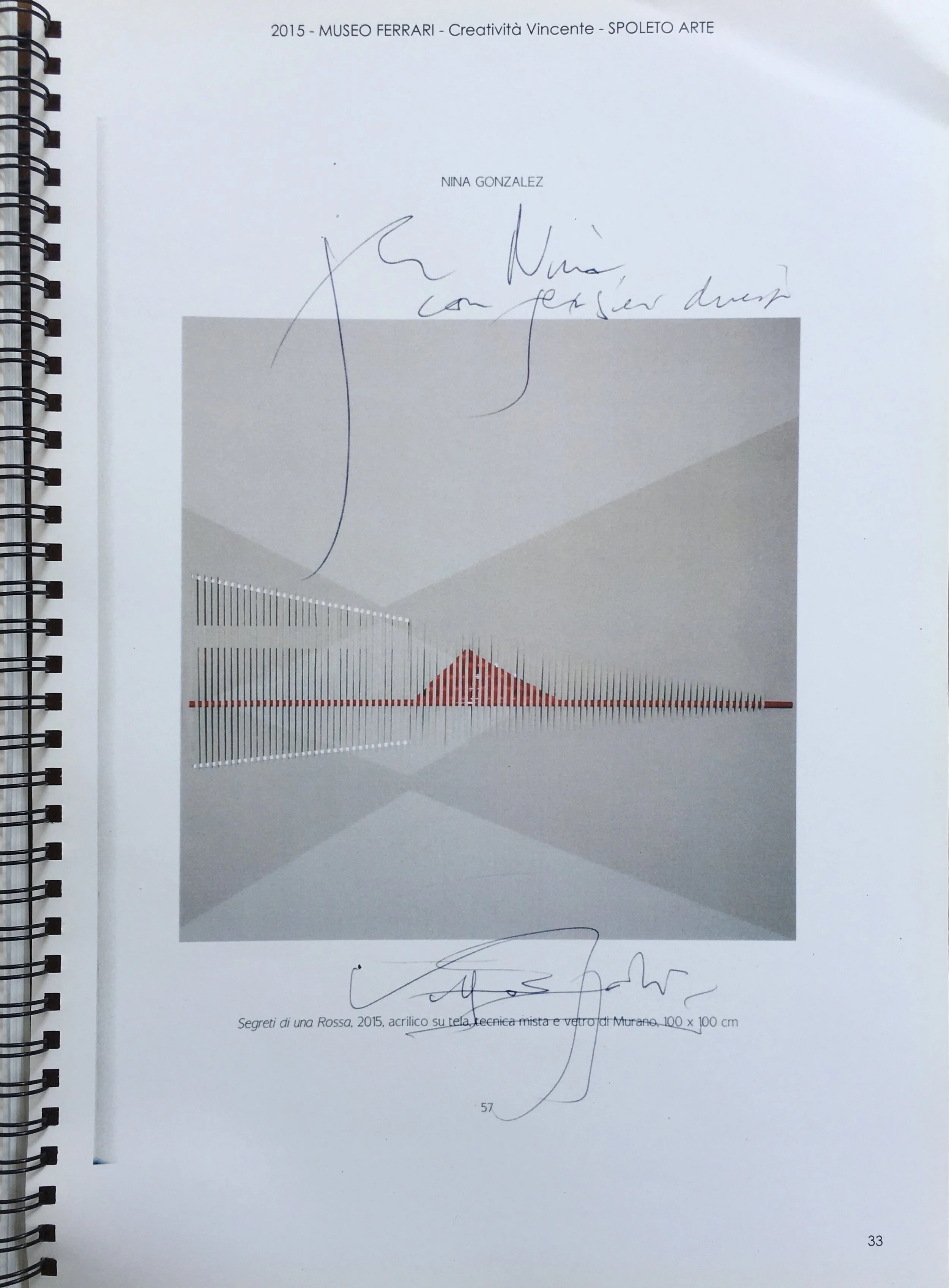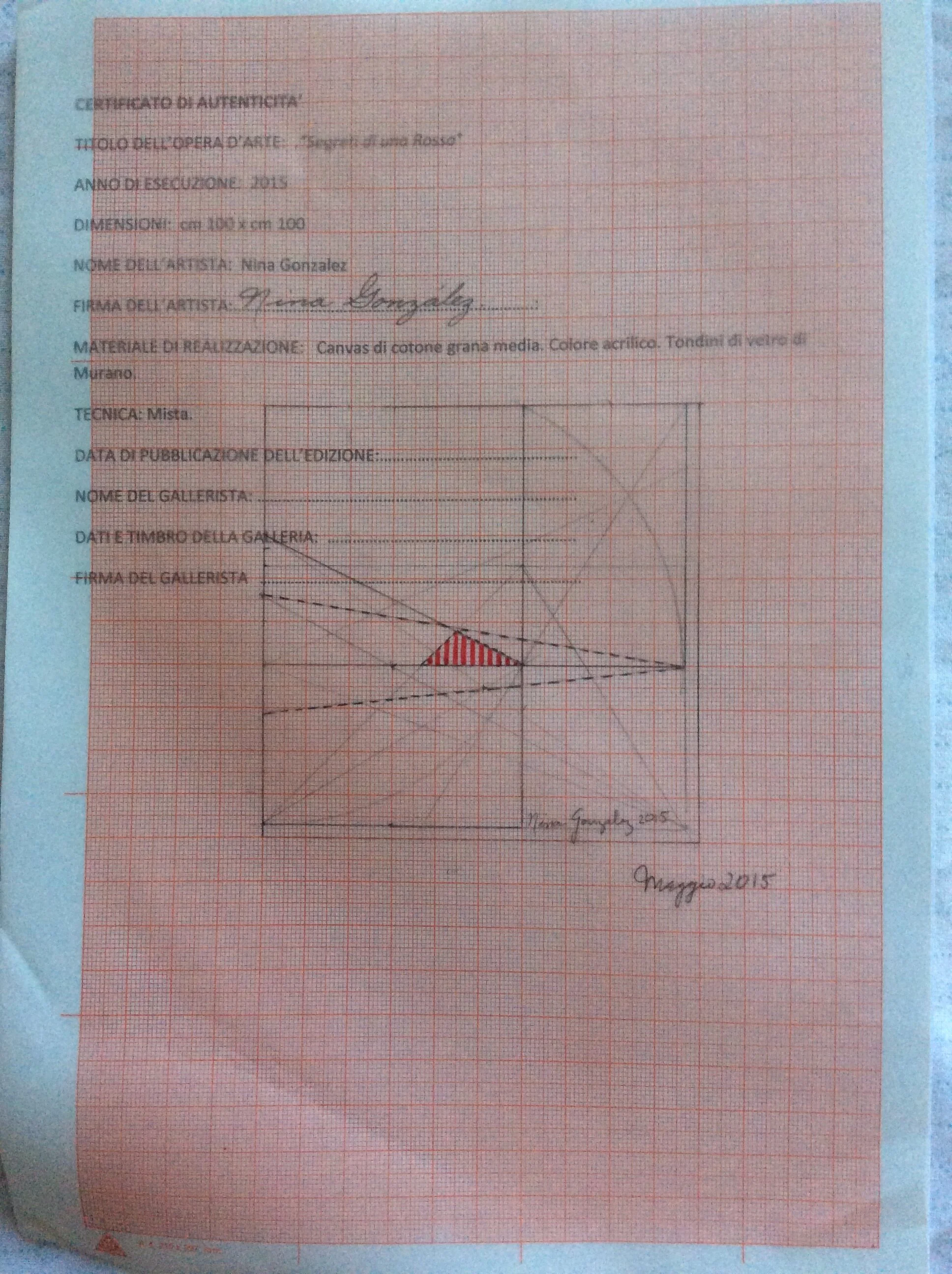FERRARISEGRETI DI UNA ROSSA SEGRETI DI UNA ROSSA2015 ACRILICO SU TELA TECNICA MISTA VETRO DI MURANO CM 100 x CM 100